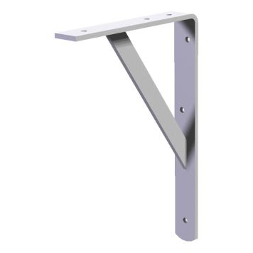 Hvitlakkert (NCS S0500-N, glans 35) hylleknekt av metall med skråstiver.