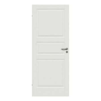 Massiv innerdør i tradisjonell design og høy kvalitet. Mønstret er formet i et stykke uten skjøter og døren er oppbygget rundt en massiv lydisolerende kjerne som gir et eksklusivt inntrykk. Døren har også en slitesterk overflate som er lett å holde ren. Tidløs dør som passer like godt i villaen som en moderne leilighet. Døren leveres med snap-in hengsler og låsekasse. Karm må kjøpes separat.