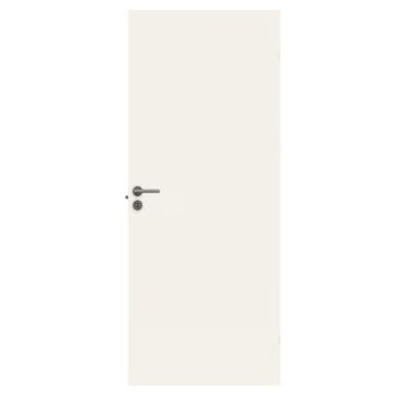 Enkel, hvit dør med stilig nordisk design kombinerer det rene utseendet med en solid og støydempende kjerne.