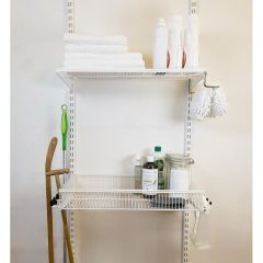 Kjøp enten komplett løsning til garderobe, åpen lagring eller bygg inn garderobeinnredningen på innsiden skyvedører. Synes du ikke at kombinasjonsforslaget på pakkeløsningene er optimale til ditt areal. Kan du enkelt selv plukke ut den innredningen som passer deg i løse deler! Trådkurver, trådhyller, meshkurver, hengeskinner, konsoller, veggskinner, hyller, stativ med mer.