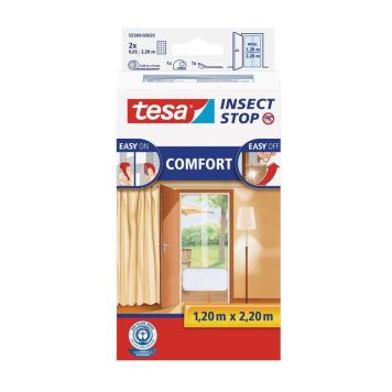 Tesa insektsnett COMFORT til dører er en veldig effektiv løsning mot mygg og insekter i hjemmet. Insektsnettet passer de fleste uteplass- og balkongdører og lar deg ha døren åpen under utsatte perioder uten at du behøver å bekymre deg for besøk av småkryp. Takket være en spesiell borrelåsløsning er festing og fjerning av nettet raskt og enkelt. Du trenger kun å presse den selvklebende borrelåsteipen på dørkarmen og bruke den medfølgende pressanordningen for å trykke insektsnettet på for å slippe insektene.