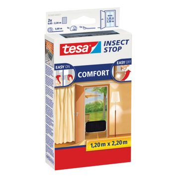 Tesa insektsnett COMFORT til dører er en veldig effektiv løsning mot mygg og insekter i hjemmet. Insektsnettet passer de fleste uteplass- og balkongdører og lar deg ha døren åpen under utsatte perioder uten at du behøver å bekymre deg for besøk av småkryp. Takket være en spesiell borrelåsløsning er festing og fjerning av nettet raskt og enkelt. Du trenger kun å presse den selvklebende borrelåsteipen på dørkarmen og bruke den medfølgende pressanordningen for å trykke insektsnettet på for å slippe insektene.