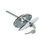 Håndtaket er laget av forkrommet stål og utstyrt med lås, slik at garasjeporten låses forsvarlig.