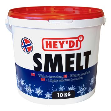 Hey'di Smelt er en effektiv issmelter på basis av magnesiumklorid. Hurtigvirkende, drøy i bruk og lang virkningstid. Trapper, oppkjørsler, parkeringsplasser, fortau, gangveier, etc.