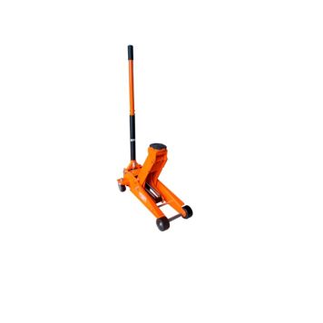 Her har vi en kompakt 3 tonns jekk som med sine doble kolber gjør det mulig å nå maksimal høyde med syv pump. Den har nylonhjul og støvbeskyttelse som sørger for at kolber og fjær ikke kommer til skade, og en gummiskål som beskytter kjøretøyet og minimerer risikoen for at den sklir av, håndtaket har skumplast som beskytter kjøretøyets karosseri.