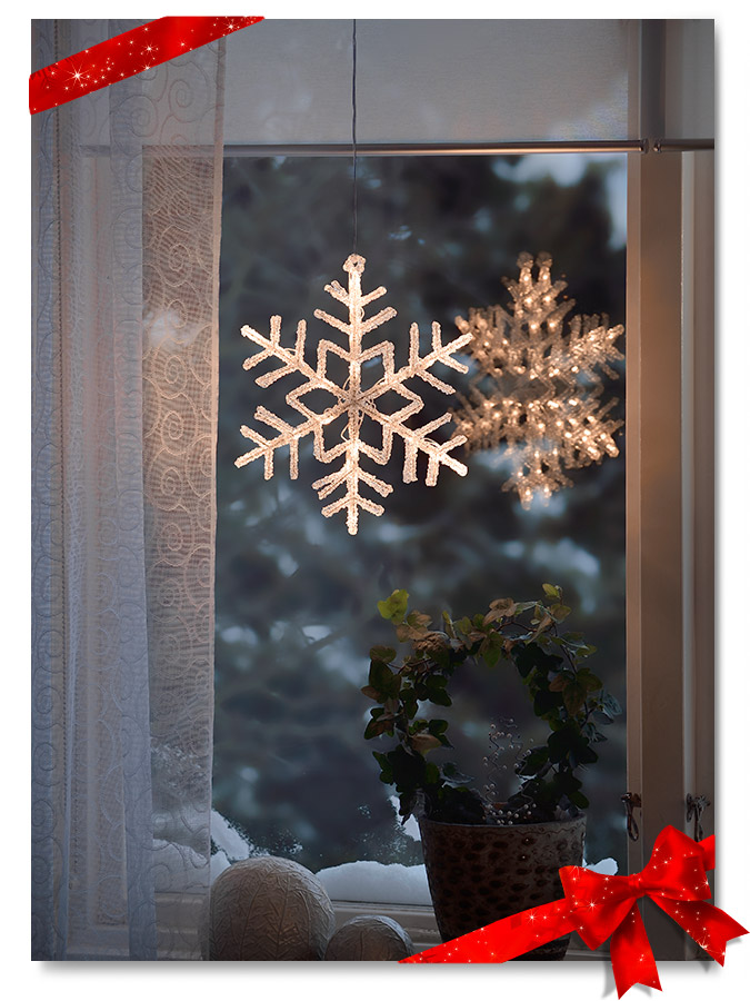 Vinduene fortjener det lille ekstra i julehøytiden, blant annet kan du henge opp en eller flere adventsstjerner og/eller sett en adventsstake i vinduskarmen. Disse gir et varmt og innbydende inntrykk til alle som oppholder seg i rommet. De klassiske papirstjernene eller metallstjerner i gull og sølv er tidløse valg, mens moderne LED-adventsstaker i ulike former tilbyr en bærekraftig løsning som også er energieffektiv. For en ekstra touch kan du komplettere med små dekorative minigraner, vindusklistermerker eller frostede dekorasjoner. Disse enkle detaljene gir en livfull julefølelse som hever julestemningen fra første øyekast.