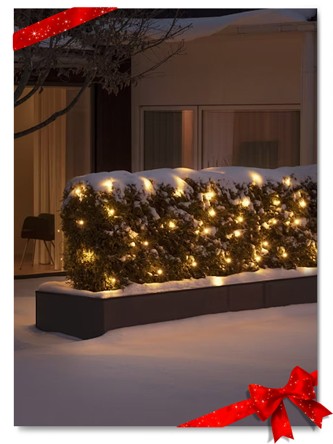 Lysnett er en rask og enkel måte for å forvandle busker, små trær og hekken i hagen til magiske lyslandskap. Med et lysnett kan du dekke et større område uten å måtte beregne lengde med en eller flere lyslenker. Velg mellom ulike størrelser og farger på nettet for å skape den riktige stemningen for deg, fra klassiske varmhvite lys til kaldhvite for en frostaktig vinterfølelse. Plasser gjerne lysnettene på utvalgte busker langs hagegangen eller i nærheten av inngangen for å skape en innbydende atmosfære som fanger blikket.