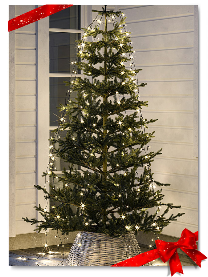 Et juletre utendørs er en hyggelig detalj i hagen som fanger blikket og samtidig sprer julestemning. Hos BAUHAUS finner du både edelgran og vanlig gran i forskjellige størrelser, perfekte for å pynte opp uteområdet. For å gi treet et unikt uttrykk kan du bruke lyslenker som er beregnet til utendørs bruk, i ulike farger – velg varmhvite eller klassiske gule lys for en tradisjonell følelse, eller fargede lyslenker for et mer lekent inntrykk. Fullfør med julekuler i store størrelser som tåler vær og vind, og avslutt med en glitrende stjerne på toppen for å skape et tre som lyser i mot deg i vintermørket.