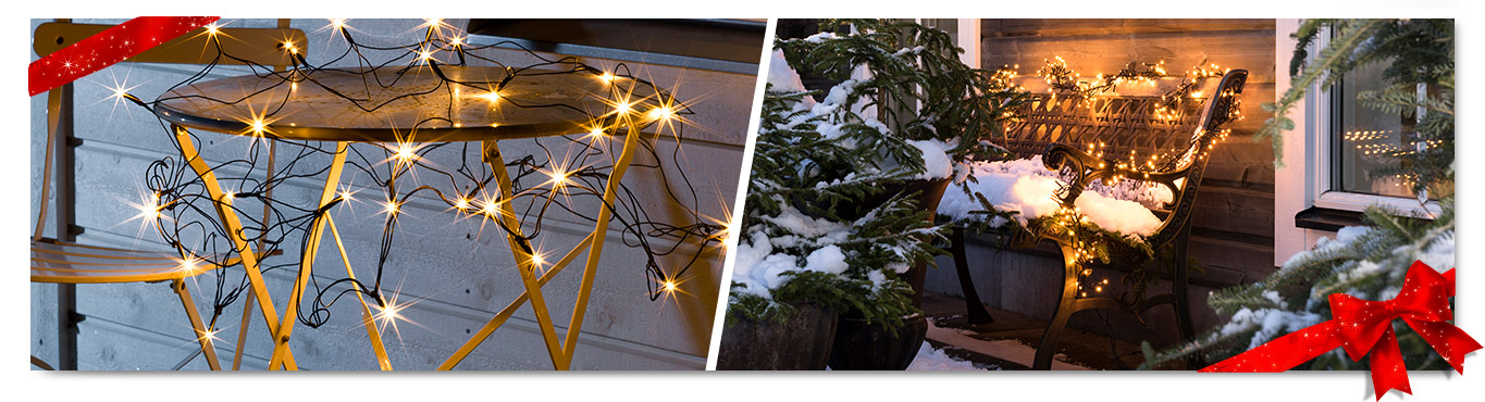 Skap et magisk og lysende julehus med lyslenker. Lyslenkene kan med fordel brukes til å ramme inn hele huset, balkongen eller hagen. Ved å henge lenker langs taket, fasaden eller på gjerdet skaper du en varm og innbydende lysramme rundt hjemmet ditt. For en enhetlig stil kan du velge lenker i samme farge, eller skape et mer lekent preg ved å blande ulike fargetoner. LED-lyslenker er energieffektive og holdbare, noe som gjør dem til et utmerket alternativ for å spre stemning gjennom hele sesongen.
