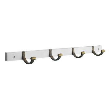 Knaggen fra Beslagsboden er et stilig og praktisk tilskudd til hjemmet ditt. Med 4 kroker er den designet for å hjelpe deg med å organisere og henge opp ulike gjenstander på en elegant måte. Knaggrekken er laget av hvit MDF med kroker i antik messingsfinish, og vil egne seg like godt på badet som i gangen eller på soverommet.