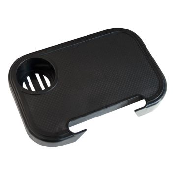 Svart og smart koppholder i plast som du fester på siden av solstoen fra Sunfun. Holderen kan monteres både på venstre og høyre side av stolen.