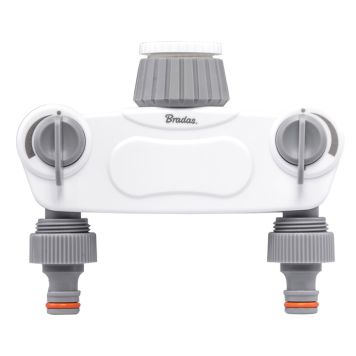 Praktisk 2-veis forgrening som gjør vanning i hagen mer praktisk og sørger for jevn regulering av vannstrømmen.