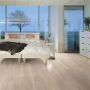 1-stavs laminatgulv i beige eik-utseende gir en varm følelse i hjemmet. Sprekker, kvister og slitne detaljer fremheves og følelsen av ekte tre forsterkes takket være overflatebehandlingen Genuine™ rustic. Følelsen av tregulv forsterkes ytterligere av at samtlige fire kanter er fasede og kompletteres med en silkematt finish. Et gulv med høy ripebeastandighet og fuktmotstand for å tåle alle hverdagens utfordringer.