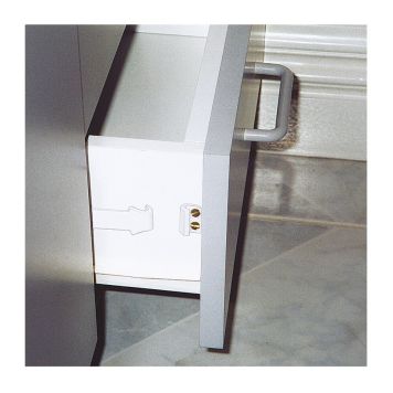 Låsen festes enkelt på siden for en skjult sikring av skuffer. Enkel å bruke for voksne, da alt du trenger å gjøre er å løfte kroken utover for å løsne låsen. Når du så lukker skuffen, låses låsen automatisk.