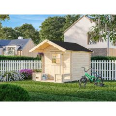 Lekestuen Stina fra Palmako er en klassisk lekestue som du enkelt bygger sammen med barnet ditt. Denne vakre knutetimrede lekestuen er perfekt for alle aldre. Stuens detaljer, som sprossene på vinduene, den lekevennlige lille verandaen og de vakre formene på vindskivene, gjør Stina til en liten perle i hagen din! Den leveres umalt slik at du og barnet ditt kan la fantasien flyte for å skape deres unike stue. Beregnet for utendørs bruk.