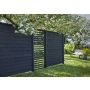 Vær oppmerksom på at det kan forekomme visuelle 'stripemerker' på den ene siden av bordet av de trykkimpregnerte bordene. Denne nyanseforskjellen vil med tiden forsvinne. Gjerdet er grunnet svart, noe som gir gjerdet et stilig uttrykk.