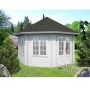 Den perfekte plassen for å skape en hyggelig sosial sammenkomst, selv i mindre hager. De store vinduene har flotte detaljer med sprosser. Dobbeltdørene leveres komplett med store vinduer og dørhåndtak med lås. Lysthuset har stabile tømmervegger og vinduer på fem av åtte sider, som gir et vakkert lys, samtidig som det beskytter mot solen.