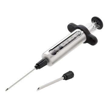 Napoleon marinadesprøyten er en kraftig sprøyte med to forskjellige tykkelser på nålen, som lar deg sprøyte marinaden direkte inn i kjøttet. Når du injiserer maten med marinade vil det gjøre maten mer smakfull, saftigere og mør. Fyll sprøyten med din favorittmarinade og få maten til å smake mye mer. Sprøyten er enkel å rengjøre og rommer ca 5 cl marinade. Den leveres med to nåler, den ene er for silt marinade og den andre er for ustresset marinade. Marinadesprøyten passer for alle som vil at maten skal smake bedre og sprøyten er også enkel å bruke.