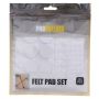 Filtknotter i sett med 125 forskjellige størrelser i hvitt.