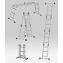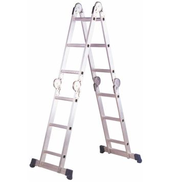 Sammenleggstigen er laget av aluminium, som er kjent for å være et lett, uoppslitelig og utrolig holdbart materiale. Stigen er 4-delt, noe som betyr at den har 4 praktiske justeringsmuligheter. Stigen kan brukes som enkelstige, wienerstige, stillas og sammenfoldet. Stigejusteringen kan endres manuelt uten bruk av verktøy.