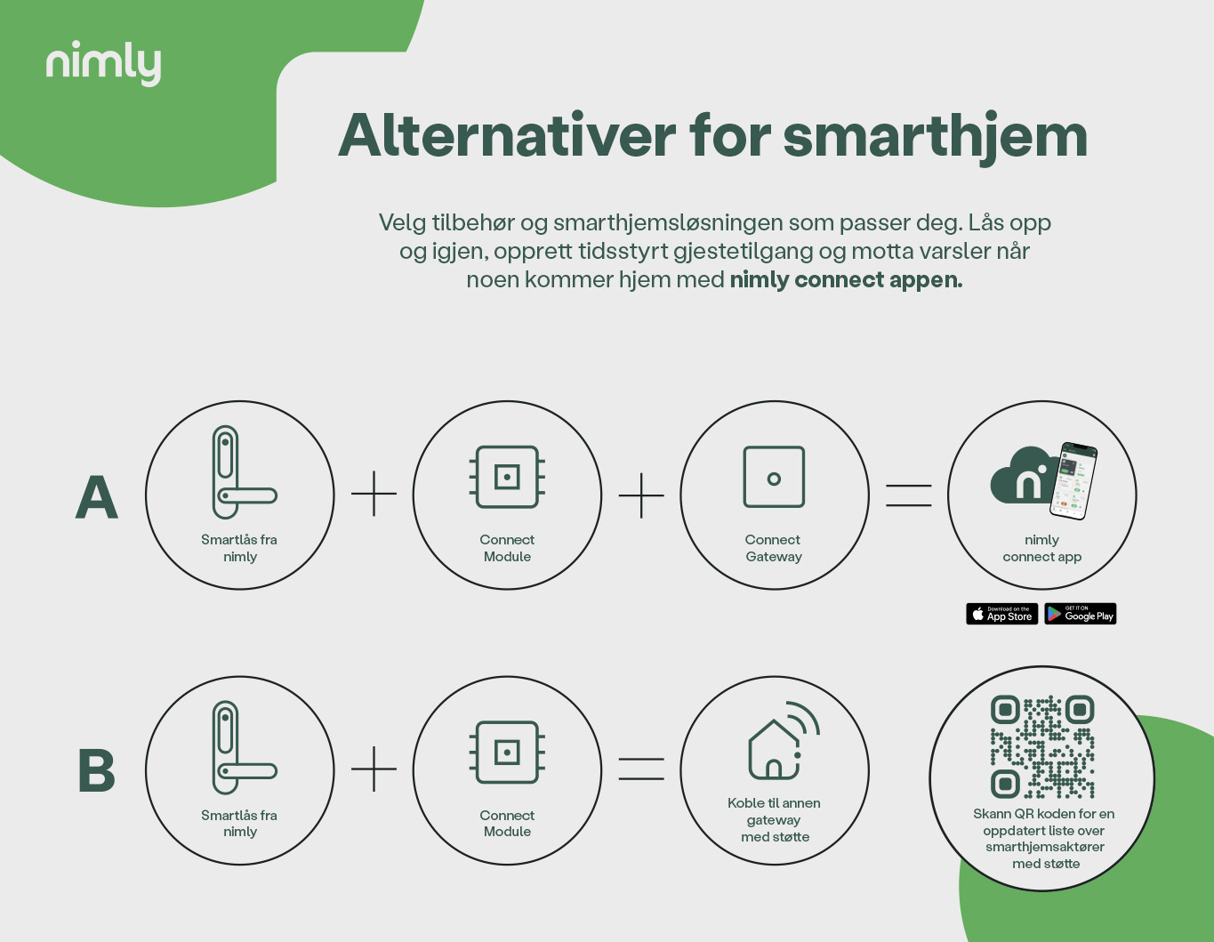 nimly utvikler løsninger for de som ønsker en enklere måte å låse og låse opp for et tryggere hjem. Ikke fordi det er fasinerende teknologi, men fordi det skaper enkelhet, trygghet og muligheter.