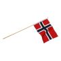 Håndflagg i polyesterstoff med foldede kanter, trepinne (55 cm) og toppkule.