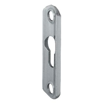 Hengeplaten er laget av metall og har en nøkkelhullsform.