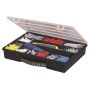 Boks i lettvekts plastkonstruksjon og gjennomsiktig lokk. Lokket er låsbart med en hurtigglidende lås og forhindrer dermed at rommene blandes under transport. Støpt håndtak for økt komfort. Rommene i oppbevaringsboksen kan tilpasses.