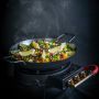 Paellapannen fra Hot Wok kjennetegnes av en gryteformet panne med håndtak på siden. Pannen har en stor stekeflate og er derfor ideell å bruke hvis du skal tilberede store retter. Selv ordet Paella kommer fra den spanske nasjonalretten. Paellapannen kan imidlertid også brukes til andre retter som trenger å stekes eller stekes, for eksempel risotto, omelett eller en gryte. Pannen passer til alle Hot Wok gassbrennere, men for optimal bruk på gassbrenneren anbefaler vi Hot Woks flate brennerring i støpejern.