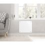 Denne elektriske varmeovnen har en ytelse på 600 W og er utført i et moderne design med en stilig glassfront som passer naturlig inn i alle typer hjem. Du fester panelovnen enkelt med veggfester slik at det sitter fast på veggen. Ovnen har en elektrisk termostat med LED-skjerm og en 24-timers timer.