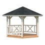 Paviljongen er laget av limtre, noe som gjør at den beholder både formen og stabiliteten over tid. Paviljongen leveres i deler som enkelt monteres og med alle nødvendige fester inkludert. Alle andre detaljer er ferdigkuttet, noe som gjør det enkelt å montere på riktig måte.