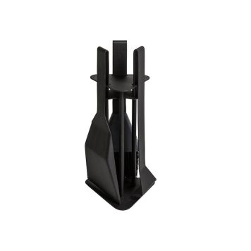 Moderne stabil ildsted i svensk design. Ildstedet har en praktisk oppsamlingskopp for brukte verktøy. Vedkroken har en "blåserørsfunksjon for oksygenering av ilden.