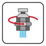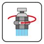 Ved en enkel vridning på strålesamleren justeres strålen mellom dusjstråle og luftstråle.