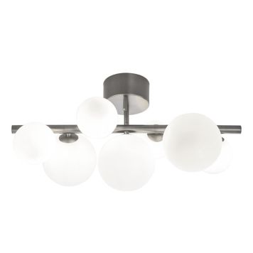 Plafond Molekyl balanserer luksus og eleganse på beste måte der rammen i tinn er omgitt av de opalhvite kuplene i glass....