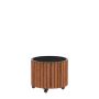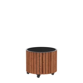 Plantekassen er laget av ThermoWood®, som er varmebehandlet furutre. Dette materialet krever i utgangspunktet ingen vedlikehold med maling eller olje, da det er svært holdbart. Treet vil imidlertid over tid få en vakker grålig nyanse når det utsettes for vær og vind. Hvis du ønsker å bevare den gyldenbrune fargen, kan du med fordel gi det en oljebehandling. Toppen og bunnen er laget av galvanisert og pulverlakkert stål i svart RAL 9005, noe som gir et stilig og moderne uttrykk.