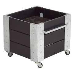 Elegant blomsterkasse utstyrt med hjul som gjør den enkel å flytte rundt. Blomsterkassen er trykkimpregnert og grunnet i svart farge.