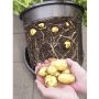 Plasser den indre potten inne i den ytre potten og fyll med torv. Sett tre settepoteter i midten av potten med 10 cm avstand mellom hverandre. Vann regelmessig, gjerne daglig med gjødslet vann. Du kan enkelt følge veksten av poteter ved å løfte på den indre potten. Etter ca 8 uker (forgrodde settepoteter) kan du begynne å høste dine egne poteter i potetpotten. Potetplantene fortsetter å utvikle nye poteter helt til frosten kommer. Velsmakende glede for hele familien!