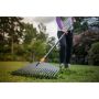 Ekstra brede løvrive fra Fiskars som er godt egnet for fjerning av nyklippet gress og løv. Den har 25 fleksible tinder bestående av glassfiberforsterket plastmateriale som gjør den slitesterk men også behagelig å bruke.