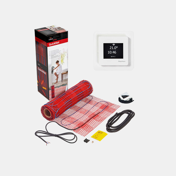 QuickNet er en tynn varmekabelmatte som passer under flis- og steingulv.