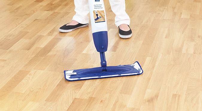 Etter støvsuging er det er på tide å vaske gulvet. Da kan du velge mellom en tradisjonell mikrofibermopp med skaft, eller en spraymopp med vaskemiddel integrert i moppen. Fordelen med en ergonomisk spraymopp med integrert rengjøringsmiddel er at det er enklere å tilpasse mengden vann når du skal vaske gulvet.