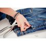 Utmerket for å dekorere jeans, sko og vesker. Fungerer også til reparasjoner i ulike tekstiler og lær som i for eksempel belter. Stanseverktøy medfølger.