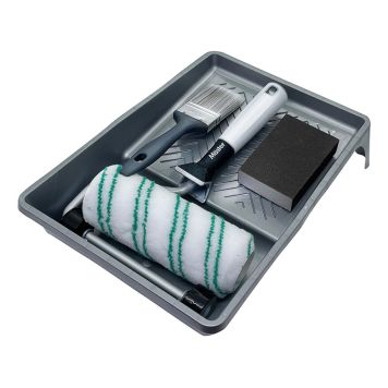 Komplett sett for å male om rommet. Bøyle og rulle med høy kapasitet for vegg. Lakkpensel for snekkerarbeid og hjø...