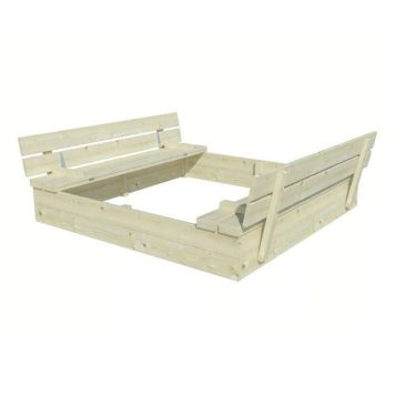 Sandy sandkasse kommer med hengslende lokk som gjøres om til sittebenker når er oppslått. Når sandkassen ikke brukes, anbefales det å lukke den slik at Katter holdes unna. Produsert i trykkimpregnert tre for lenger holdbarhet.