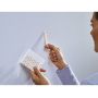 Selvklebende skrue til tapet og gips, også mulig å plassere på ømfintlige overflater. Hver skrue kan holde 1 kg, for å holde 2 kg - brukes to skruer. På grunn av den smarte Powerstrips®-teknikken er de enkle å ta bort uten at de etterlater spor - dessuten er de gjenbrukbare.