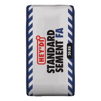 Hey’di Standard Sement FA er en finmalt grå portlandsement som blandes med støpesand og vann for å lage en støpemørtel eller med støpesand, pukk/stein og vann for å lage betong. De vanligste bruksområder er påstøp, gulvstøp og støping i forskaling, trapper, støttemurer m.m. Til muring og pussing anbefales Hey’di Mur & Pussmørtel M5 og Hey’di K/C mørtler. Hey’di Standard Sement FA er kromredusert.
