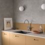 Eco-click: En innebygget vannsparefunksjon i armaturet som motvirker full vannstyrke når det åpnes. Svingtut med 120° svingbegrensning.