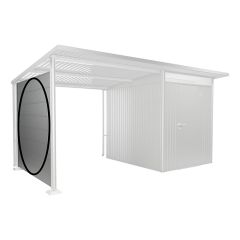 Dette sidetaket er en praktisk løsning for å beskytte uteområdet ditt mot vær og vind. Den kan monteres på venstre side, høyre side eller på begge sider av boden og gir fleksibel bruk etter behov. Aluminiumsstøttene har høydejusterbare føtter som gjør installasjonen enkel og tilpasningsdyktig til ulike underlag.