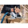 GKS 18V-57-2 GX er utstyrt med Stop Control - verktøyet oppdager automatisk slutten av kappingen KickBack Control. Støvoppsamling via integrert Click & Clean-adapter for full kompatibilitet med alle støvsugerløsninger. LED-lys for optimal belysning av skjærlinjen og røde markeringer for veiledning. Full kompatibilitet med tverrkappingsskinne og styreskinesystem