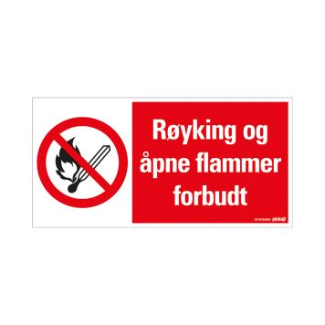 | Produktnavn | SKILT PICKUP ÅPNE FLAMMER FORBUDT 30 X 15 CM |