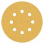 Sandpapiret har 8 hull for enklere fjerning av støv, og det har også borrelås på baksiden for raskt og enkelt å bytte ark.